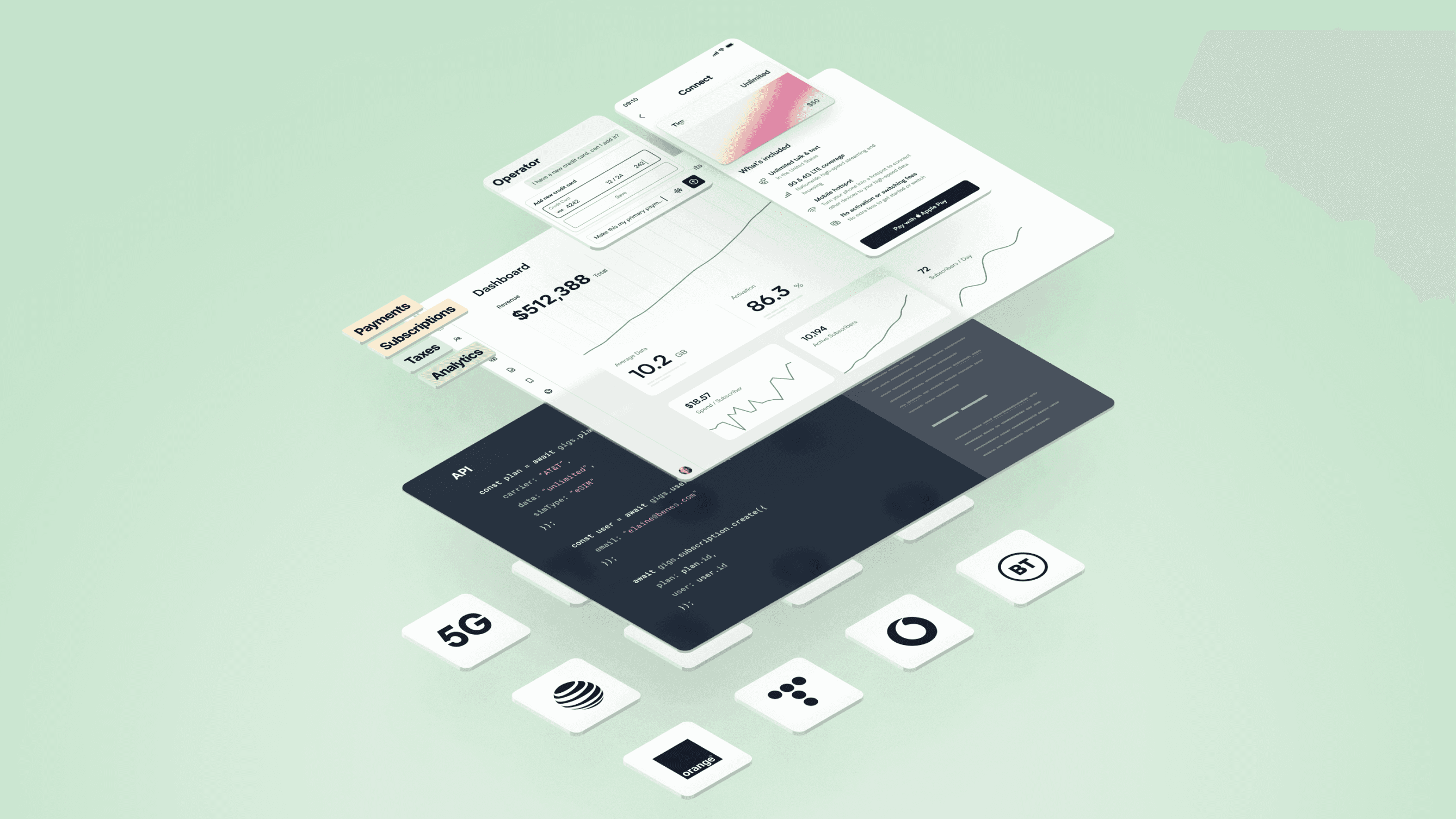 Hiring entire teams to build the software stack from scratch: In addition to the integration effort, you still need to build and piece together systems for checkout and telecom billing software, SIM provisioning, subscription management, telecom CRM, user analytics, and customer support in order to go to market.