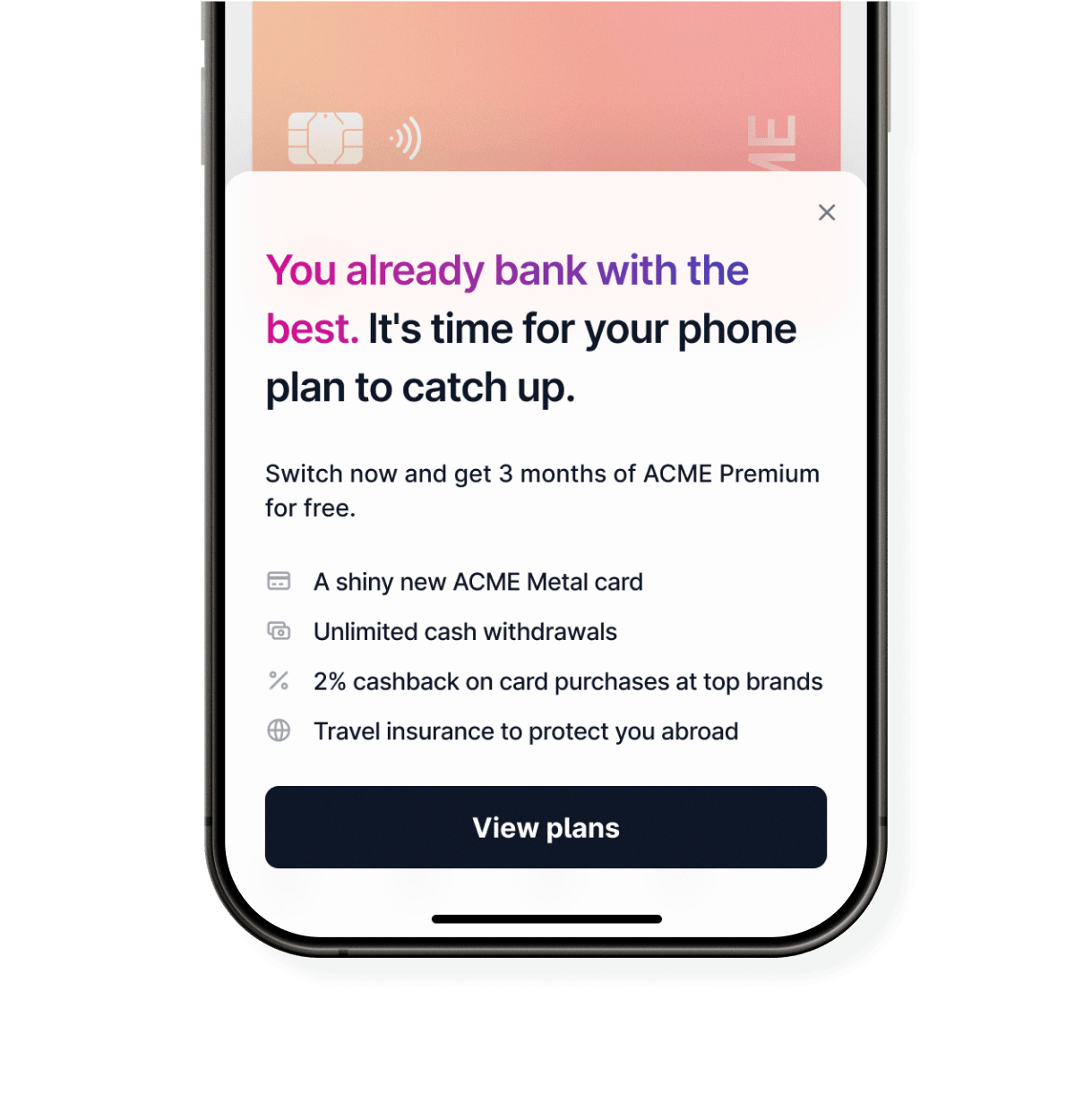 Users who trust you with their money will also trust you with their phone plan. Turn irregular spenders into monthly subscribers with an indispensable new service.